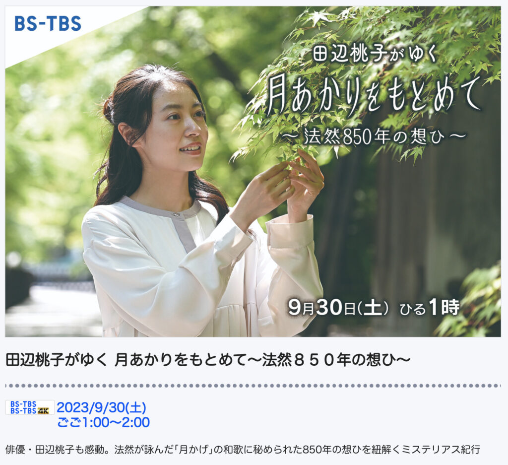 番 組 名 | 『 田辺桃子がゆく月あかりをもとめて~法然850年の想ひ~』